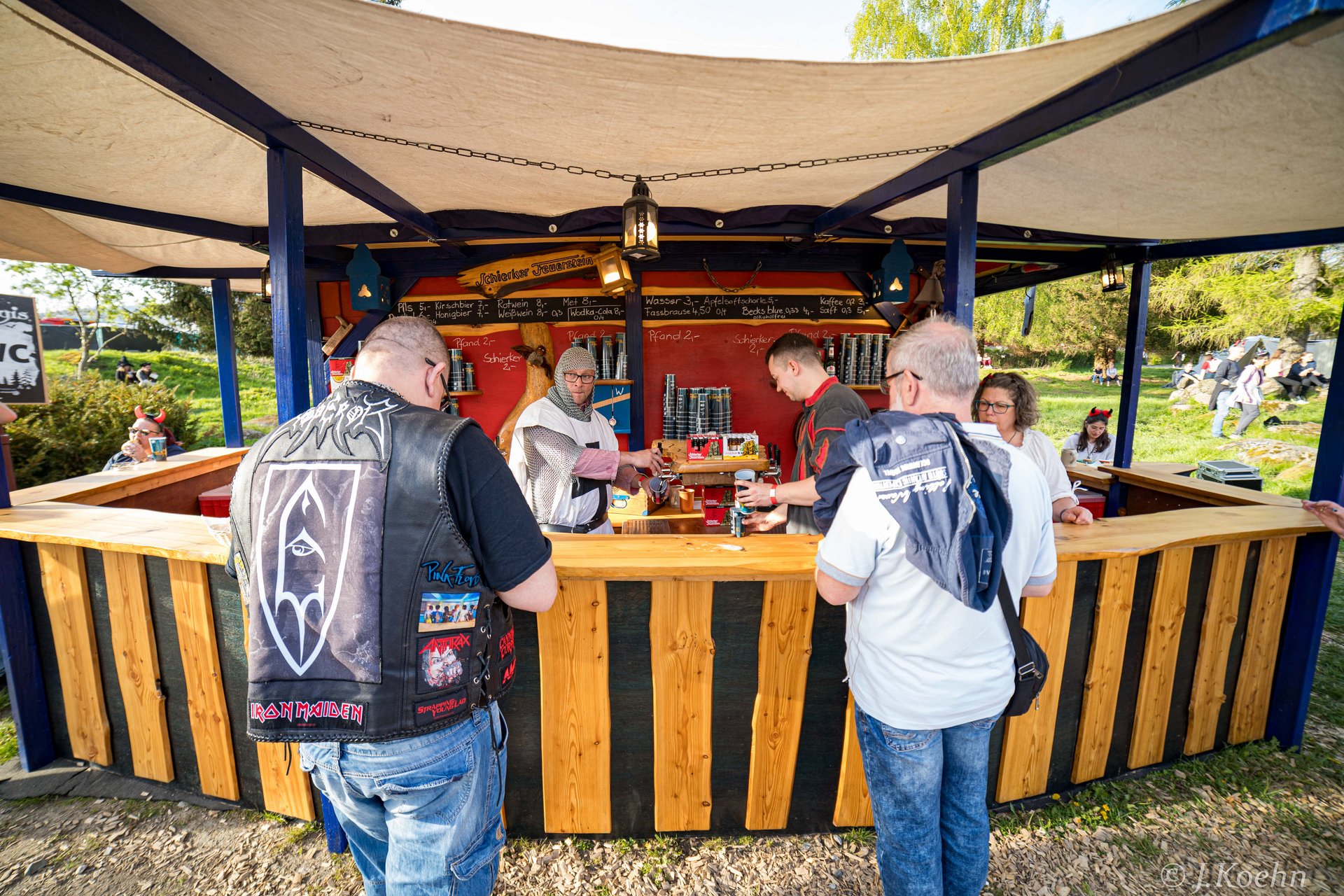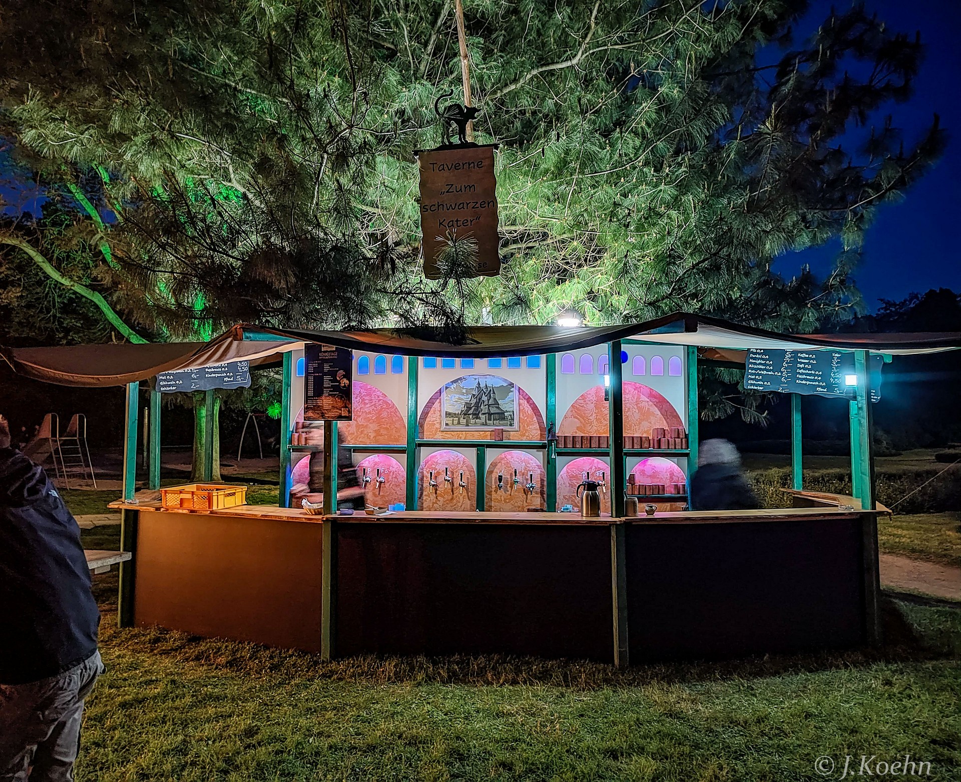 Das folgende Bild zeigt die neue Taverne. Wir bauten aus dem alten Holzstand einen völlig neuen Schankwagen fest auf einem Hänger und rüsteten ihn besser aus. Ab dem Zeitpunkt waren wir in der Lage, Feste auch als alleinige Taverne zu bewirtschaften.